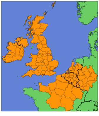 Figure: Evolution of Programme area from NWMA to NWE Programme